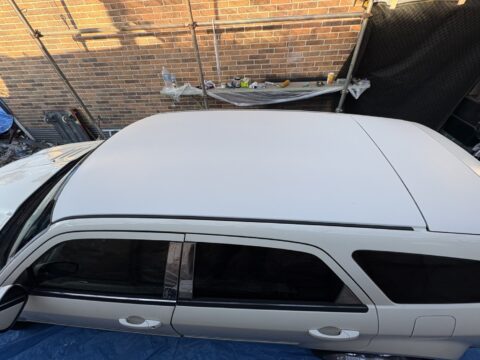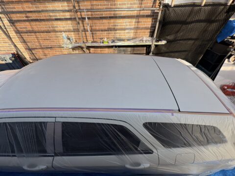 先日、既存のクリアー塗装が剥がれてしまったお車に、耐久性に優れた「ラプターライナー」での塗装を施工いたしました。